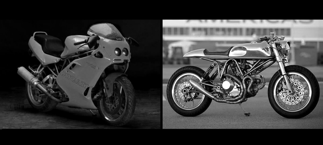 Alguns exemplos lado a lado da mota original e do resultado da transformação. Yamaha-XJ-600-51j-1990 Yamaha VMAX 2015 - CS_07 Gasoline by ItRocksBikes Yamaha XV750 Virago 1983 by Oily Rag Clothing moto guzzi le mans mk iii yamaha xjr1300 - cs_06 dissident by it-rocksbikes honda cx 500 by la motos honda cb 750 four by Raccia Motorcycles Harley-Davidson-883-Sportster Laverda 3cl / Laverau by wolf-custom Ducati 900 ss - by Autins Revival Cycles Share on Facebook Share Share on TwitterTweet Share on Pinterest Share Share on Digg Share Print Print